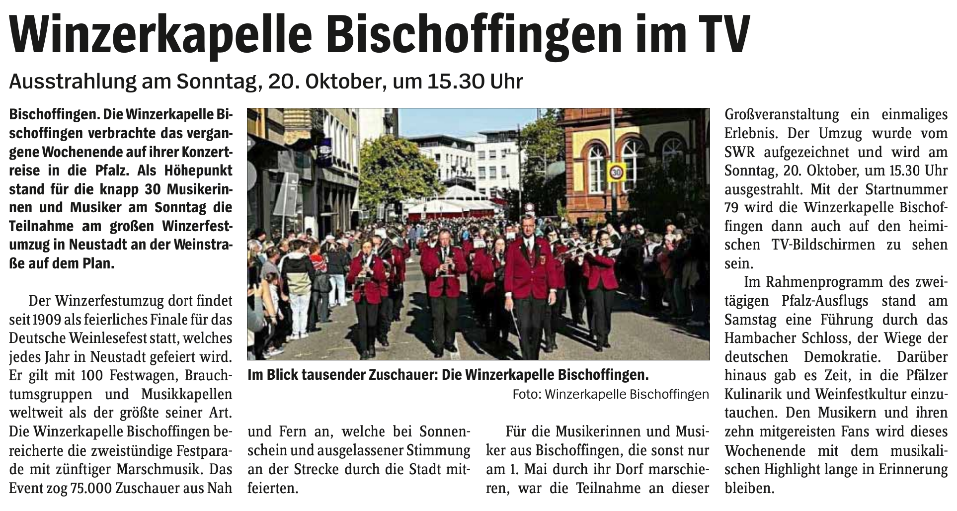 Die Winzerkapelle Bischoffingen freut sich, Sie auf unserer Homepage begrüßen zu dürfen. Sie finden hier alle aktuellen Termine und Informationen zu unserem Verein.